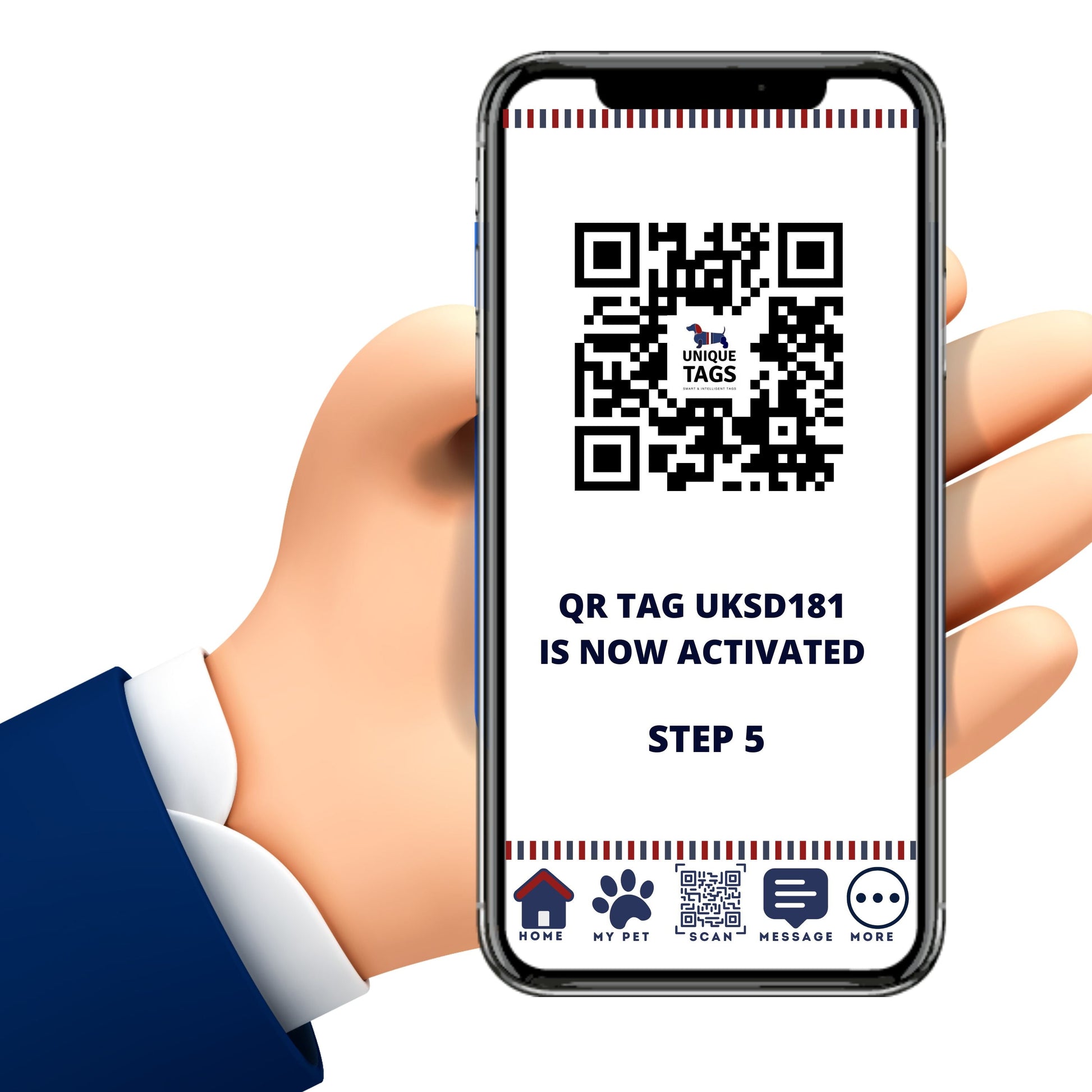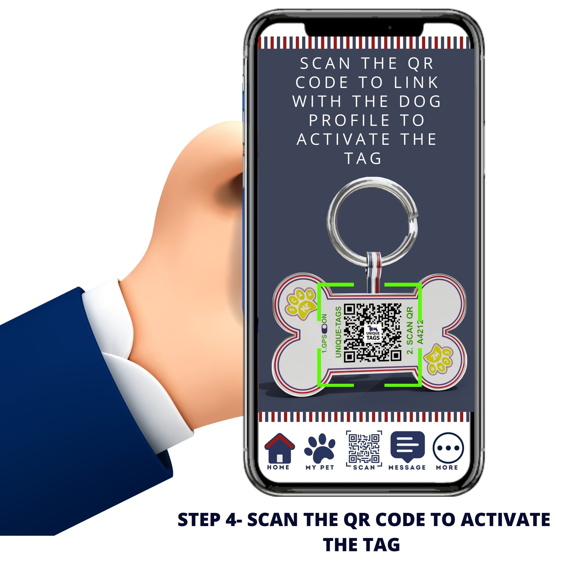 Introducing Premium Bone Shaped Navy Paw On Stars QR Tag With its unique signature striped loop now available at Unique Tags, with a pet tag specifically prepared for your companion, you can protect against the risks of loss and get peace of mind. Give your beloved pet an identification tag that reflects their unique personality while keeping them safe and secure.